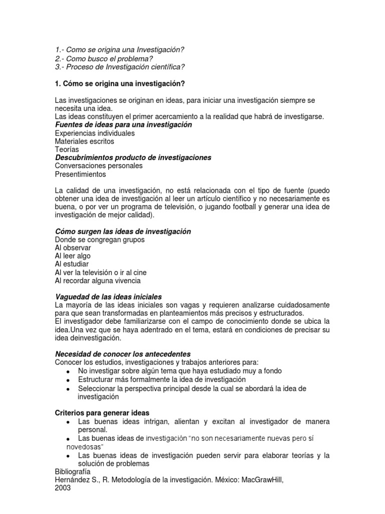 Como surgen las ideas de investigacion 839 palabras 4 páginas.