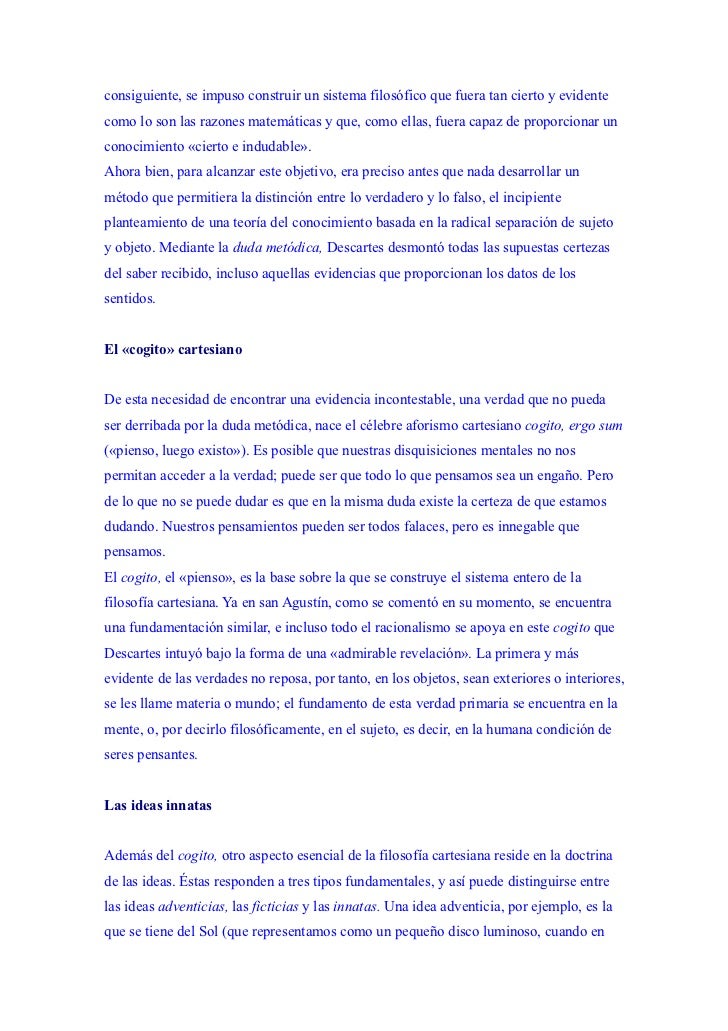 Son las que construye nuestra mente a partir de otras ideas. No nos sirven para seguir. Estas ideas pueden ser de tres tipos. 20 diciembre 2016 filosofía y ética descartes 3ideas innatas descartes las ideas idea como realidad objetiva y como acto mental.