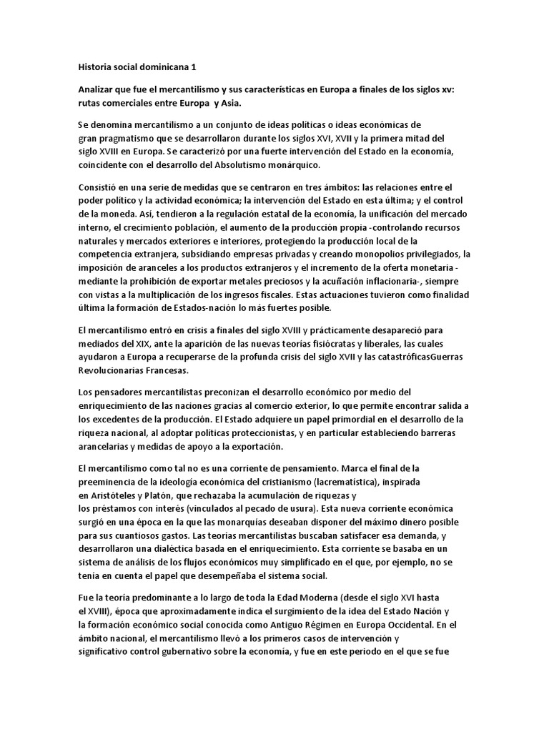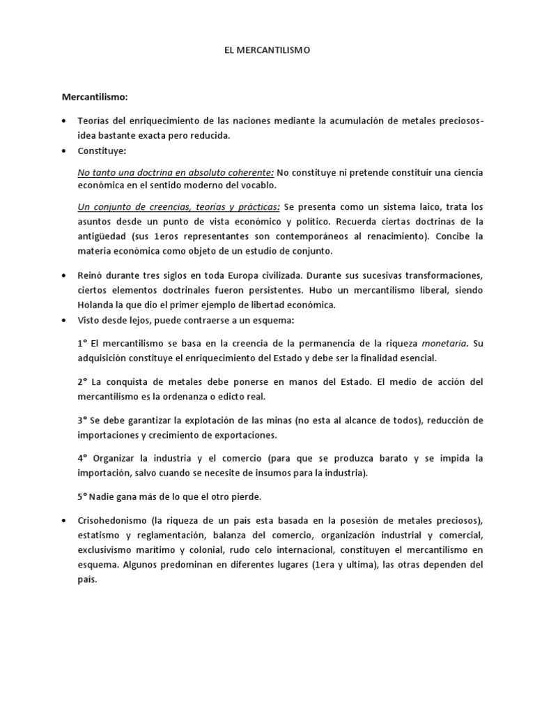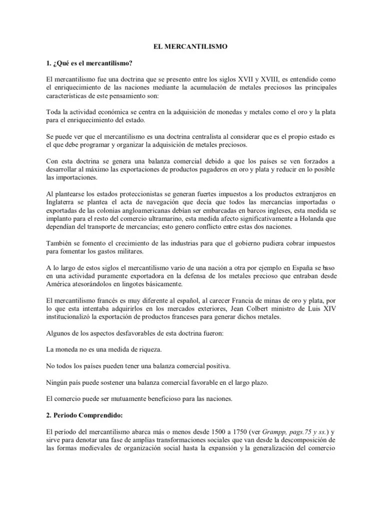 Sin embargo ahora el enfoque no consistía en acumular dinero sino en hacerlo circular para generar más dinero. Características o ideas del mercantilismo. Se puede entender al mercantilismo como un conjunto de ideas económicas que se desarrollaron durante los siglos xvi xvii y la primera mitad del xviii en europa y tuvieron gran influencia en las políticas económicas de los nacientes estados nación. El mercantilismo es el conjunto de ideas económicas que consideran que la prosperidad de una nación estado depende del capital que pueda tener y que el volumen global de comercio mundial es inalterable.